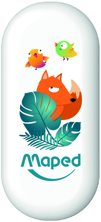 A kollekció elengedhetetlen darabja a vidám, PVC mentes, hatékony és kényelmes fogású radír, róka vagy majom mintával.