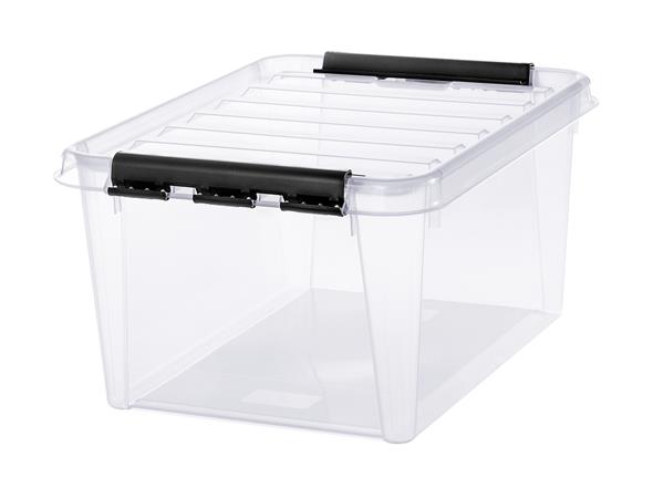 Műanyag tárolódoboz, 32 liter, fekete fogantyúkkal, SMARTSTORE "Classic 31", átlátszó