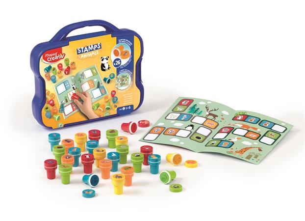 Nyomdázó készlet, foglalkoztató füzettel, bőröndben, állatok, MAPED CREATIV "Stamps"