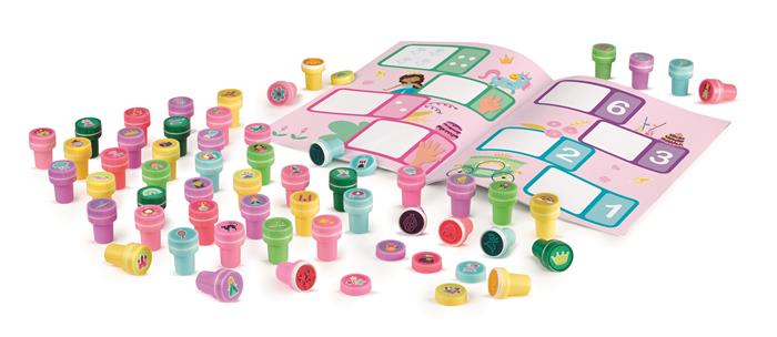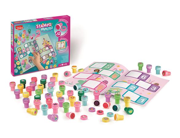Szórakoztató és egyben fejlesztő játék a kisebbek részére, akik játékosan ismerkedhetnek meg a hercegnők világával, kastélyaival. 52 darabos nyomdázókészlet különböző színekben, melyet igazán könnyű használni, hiszen nincs szükség külön tintára az alkotáshoz és a ruhából is könnyen kimosható.