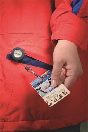 Kihúzható tartó karabinerrel névkitűzők, biztonsági kártyatartók stb. rögzítésére.