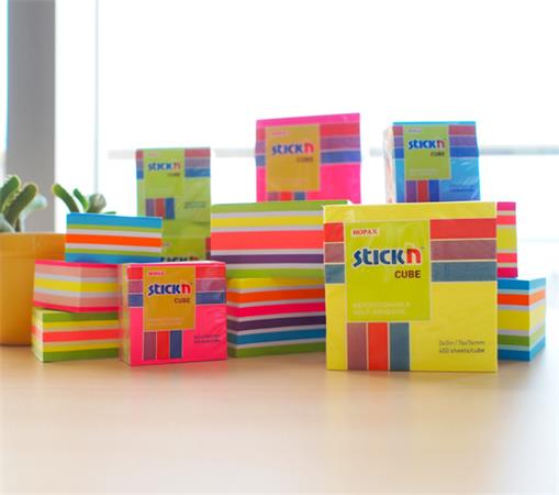 Öntapadó jegyzettömb, 51x51 mm, 250 lap, STICK N, neon színek