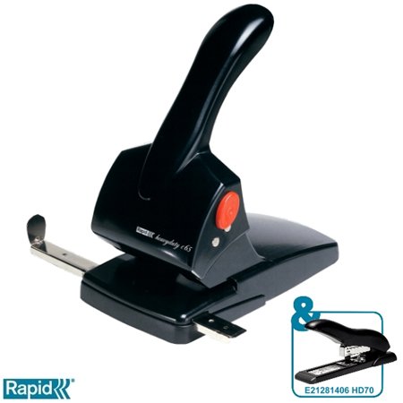 Lyukasztó, nagyteljesítményű, kétlyukú, 65 lap, RAPID "HDC65 Fashion", fekete