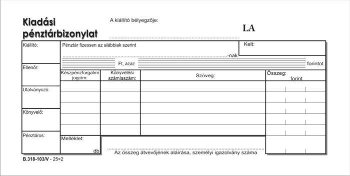 Nyomtatvány, kiadási pénztárbizonylat, 25x2, VICTORIA PAPER "B.318-103", 10 tömb/csomagAlapítvány támogatás 2 Ft