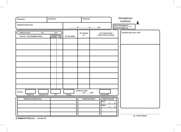 Nyomtatvány, menetlevél, tehergépjármű, 100 lap, A4, fekvő, VICTORIA PAPER, "D.GÉPJ.21.", 10 tömb/csomagAlapítvány támogatás 2 Ft
