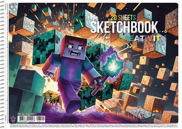 Vázlatfüzet, spirál, A4, 100 g, 20 lap, SHKOLYARYK "Creativity"