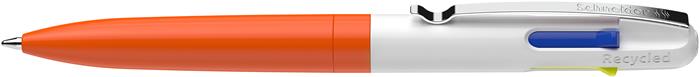 Golyóstoll, 0,5 mm, nyomógombos, négyszínű, SCHNEIDER "Take 4 Neon", narancs-fehér