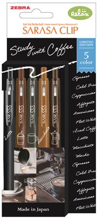 Zseléstoll, 0,33 mm, nyomógombos, ZEBRA "Sarasa Study with Coffee", 5 különböző szín