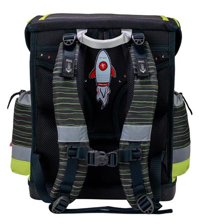 - 2 belső rekesz (A4-es méretű könyveknek megfelelő) + 1 órarend tároló + 2 oldalsó rekesz (esernyő + 0,7 literes palack részére).