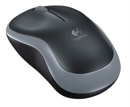 Egér, vezeték nélküli, optikai, közepes méret, USB, LOGITECH "M185", szürke