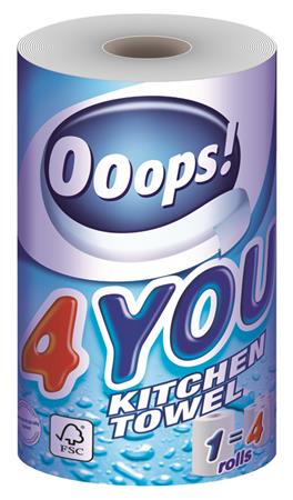 Háztartási papírtörlő, 2 rétegű, 200 lap, tekercses, OOOPS "4You"