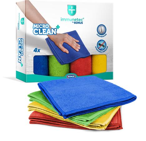 Törlőkendő, mikroszálas, 4 db, BONUS "MicroCLEAN Plus Immunetec"
